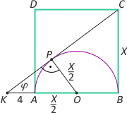 Zad. 3. W kwadrat ABCD wpisano półokrąg o średnicy AB. Styczna do półokręgu poprowadzona z wierzchołka C przecina prostą AB w punkcie K. Wiedząc że |KA|=4, oblicz pole kwadratu.