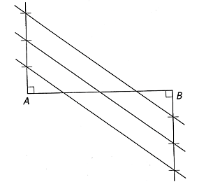 3. Używając linijki i zardzewiałego cyrkla (o stałym rozwarciu), skonstruuj prostą prostopadłą do odcinka AB w punkcie A, nie przedłużając odcinka poza ten punkt.