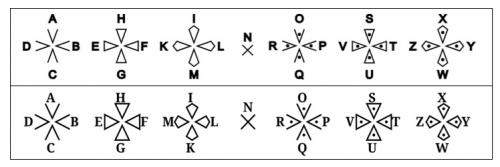 Zad. 2. Kod z zad. 1 to szyfr templariuszy. Online można znaleźć dwie jego wersje. ANNA I MATEMATYKA zostały zaszyfrowane z wykorzystaniem wersji pierwszej (stąd odpowiedź w zad. 1), ale za poprawne zostały uznane również odpowiedzi według klucza drugiego.