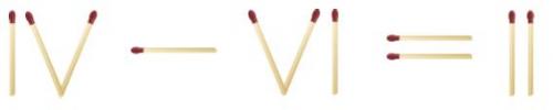 Zad. 3. Rozwiązanie przedstawia rysunek. Można przestawić zapałkę z równości do znaku minus.